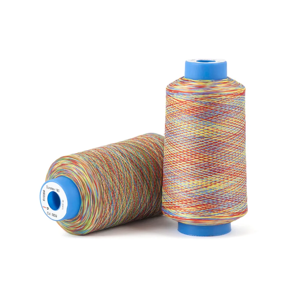 DURAK Duratex Multicolor® — многоцветная текстурированная полиэстеровая нить. Окраска впрыском до четырёх цветов. Придаёт изделиям выразительный вид — от светлых тонов до контрастной радуги. Объёмная структура, высокая эластичность и низкая усадка обеспечивают отличные швы в объёмных строчках и в оверлоке.