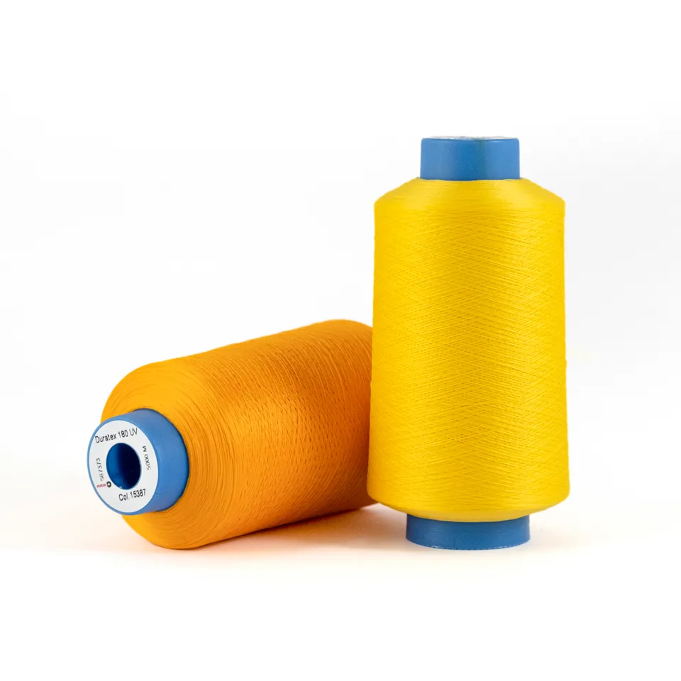 DURAK Duratex UV — текстурированная нить из высокопрочного непрерывного полиэстерового филамента с устойчивостью к УФ. Защищает от снижения прочности, стойкости к истиранию и выцветания (УФ-деградация). Минимизирует деградацию. Высокая стойкость к истиранию при скоростном шитье. Прочность, яркие цвета и широкий выбор номеров.