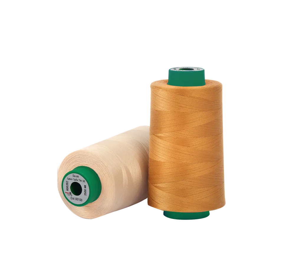 В джинсовой отрасли широко применяется лазерная технология выцветания для создания узоров и эффекта поношенности. Лазер воздействует на индиго в определённых точках, создавая контраст светлых и тёмных зон, но при этом может повреждать швы. Нить Durak Laser Safe разработана как не плавящаяся, долговечная швейная нить, сохраняющая прочность при лазерной обработке и обеспечивающая высокую износостойкость швов в джинсовых изделиях. Структура нити не страдает от высокой энергии лазера, что поддерживает и внешний вид изделия, и надёжность швов.