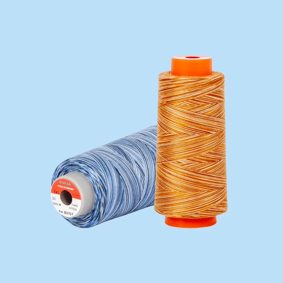 DURAK Poly-Strong PP Multicolor® — многоцветная нить из 100% полиэстера. Окраска впрыском до четырёх цветов создаёт многоцветный эффект. Специальная отделка и ровная структура придают изделиям выразительный вид — от светлых тонов до контрастной радуги. Улучшает цветовую гармонию и качество шитья, повышает эффективность производства.